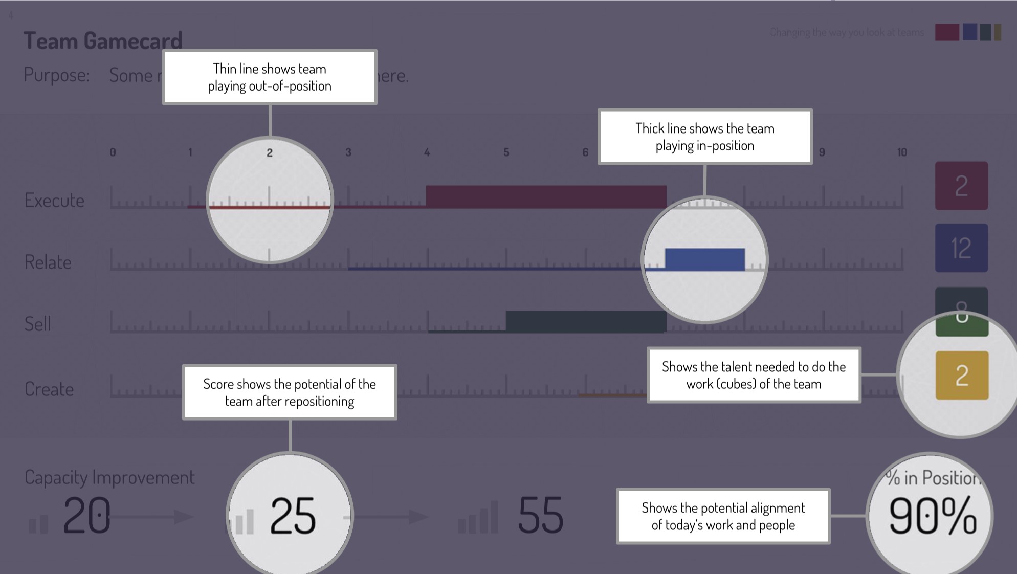 When a team of 3-7 people plays the game, the team leader gains action steps to improve the team’s makeup, gaps, and readiness to collaborate.